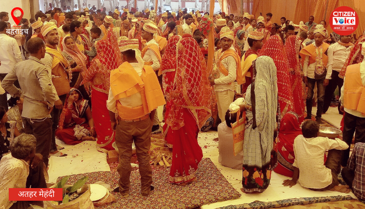 बहराइच : जनपद में आज मुख्यमंत्री सामूहिक विवाह के अवसर पर विकास खण्ड चित्तौरा पर आयोजित विवाह कार्यक्रम में तेतालिस जोड़ो ने विवाह बंधन में बंधकर एक दूसरे का साथ जीवन भर निभाने की कसमें खाकर सूबे के मुख्यमंत्री योगी आदित्यनाथ की इस योजना की जमकर सराहना की मुख्य अतिथि उपजिलाधिकारी महेंद्र सिंह धामी ज़िला अल्पसंख्यक अधिकारी संजय मिश्रा बीडीओ सौरभ श्रीवास्तव और बीइओ राजकिशोर ने नवविवाहितों को अपना आशीर्वाद दिया।