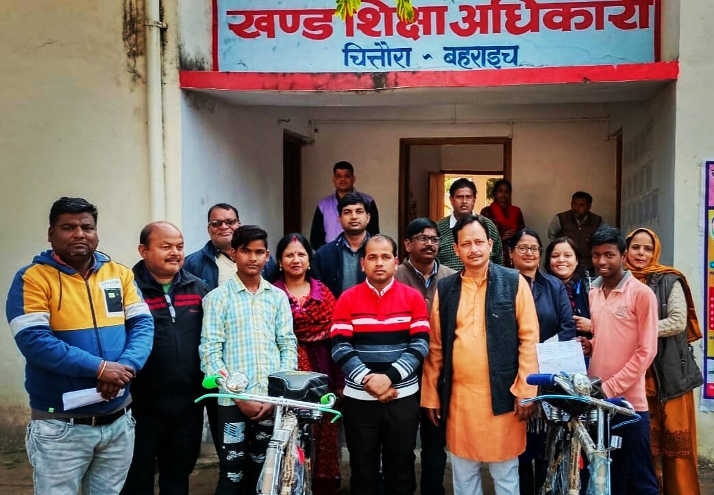 बहराइच : जनपद में शिक्षकों ने मानवता का धर्म निभाते हुए गरीब बच्चों के चेहरे पर मुस्कान लाने का कार्य किया है बताते चले जनपदीय बाल क्रीड़ा प्रतियोगिता में सम्मिलित होने आए विकासखंड चितौरा के उच्च प्राथमिक विद्यालय सुहेल नगर के 2 विद्यार्थी प्रेम कुमार निषाद एवं सूरज यादव की साइकिल प्रतियोगिता के दौरान ही इंदिरा स्पोर्ट्स स्टेडियम से चोरी हो गई थी। दोनों बच्चे गरीब परिवार के थे और साइकिल खो जाने के कारण बहुत अधिक परेशान थे।