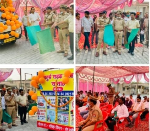 संत कबीर नगर : पुलिस अधीक्षक सोनम कुमार के निर्देशन अपर पुलिस अधीक्षक संतोष कुमार सिंह के मार्गदर्शन में 24.04.2022 तक चलाए जा रहे चतुर्थ सड़क सुरक्षा सप्ताह के अन्तर्गत क्षेत्राधिकारी यातायात राजीव कुमार यादव द्वारा ए0आर0टी0ओ0 अंजनेय सिंह प्रभारी यातायात बृजेश यादव की उपस्थिति में कलेक्ट्रेट परिसर में यातायात जागरूकता रथ को हरी झण्डी दिखाकर रवाना किया गया