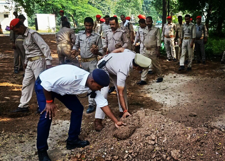 दीपावली पर श्रमदान कर यातायात पुलिस ने की साफ सफाई।