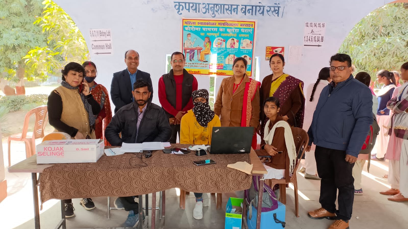 बहराइच : जिले के महिला स्नातकोत्तर महाविद्यालय व किसान स्नातकोत्तर महाविद्यालय में गुरुवार को कोविड -19 टीकाकरण कैंप आयोजित किया गया । पीरामल स्वास्थ्य के जिला प्रोग्राम लीड मोहम्मद युसूफ व महाविद्यालय की प्राचार्य डॉ0 प्रिया मुखर्जी एवं डॉ0 विनय सक्सेना के सहयोग से आयोजित कैंप में छात्रों ने उत्साह के साथ टीका लगवाया । साथ ही सभी छात्रों ने अपने परिवार के 18 वर्ष से ऊपर के सभी सदस्यों, गर्भवती व धात्री महिलाओं को भी टीकाकरण लगवाने में सहयोग करने के लिए कहा