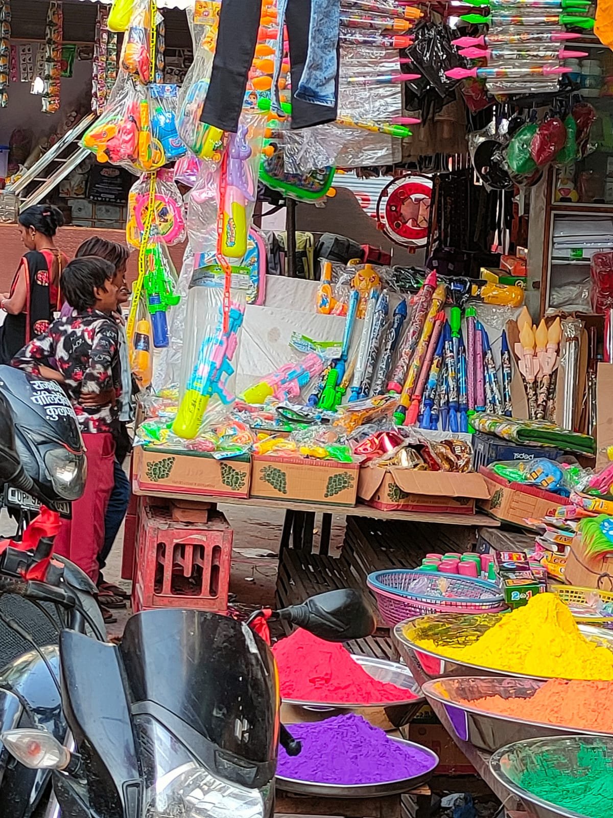 रंगों के व्यवसाईयो ने बताया कि पिट्ठू बैग पिचकारी, मिकी-माउस, चाइना बंबू, अनारकली की काफी मांग हो रही है। इसके साथ ही विभिन्न प्रकार के मुखौटों की भी काफी खरीददारी हो रही है। लोगों के बीच बुलडोजर बाबा मास्क की ज्यादा मांग है। रंग-बिरंगी पिचकारियां अलग-अलग दामों में उपलब्ध है। कुल मिलाकर रंगों का त्योहार होली को लेकर बाजार सज गए है और अबीर गुलाल की भरमार है।