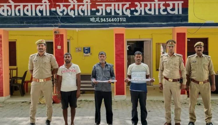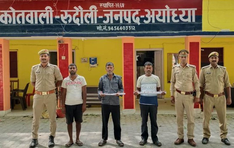 अयोध्या : कोतवाली रूदौली पुलिस ने रविवार की सुबह ग्राम कूढा सादात तिराहा से हत्या में वांछित तीन आरोपियों को गिरफ्तार कर लिया है।जिनके पास से हत्या में प्रयुक्त एक बांका व एक लकड़ी का डंडा भी बरामद किया गया।