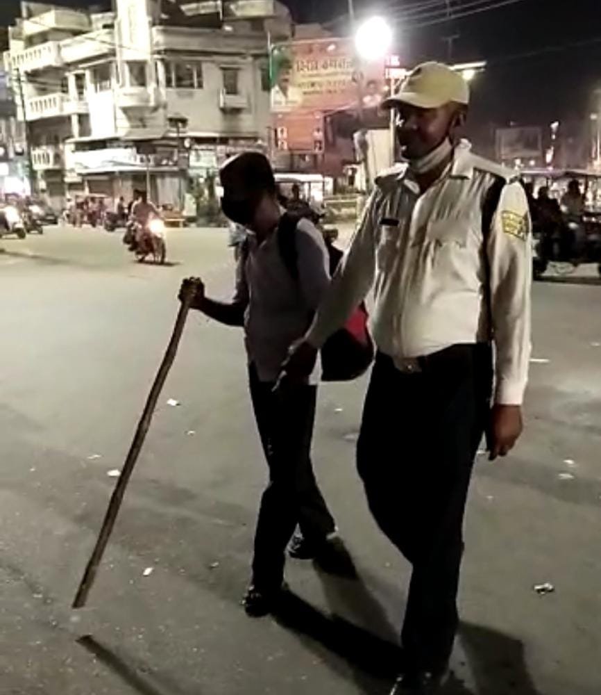 नेत्रहीन व्यक्ति को सड़क पार कराने में मदद कर ट्रैफिक पुलिस ने जीता दिल