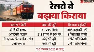 रेल मंत्रालय के मुताबिक, अगर कोई यात्री 215 किलोमीटर से ज्यादा दूरी की यात्रा करता है और साधारण श्रेणी (जनरल क्लास) में सफर करता है, तो उसे अब प्रति किलोमीटर 1 पैसा ज्यादा देना होगा।