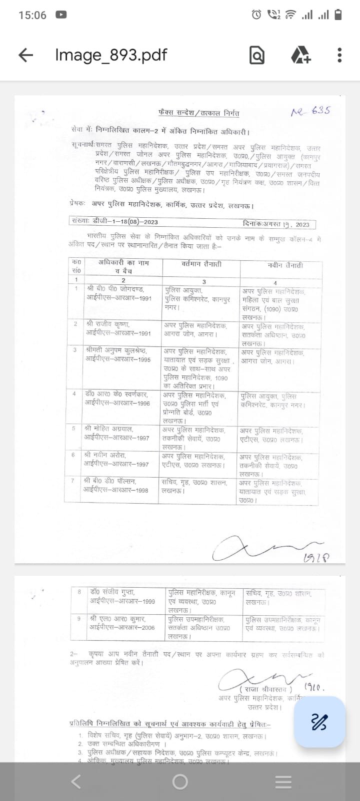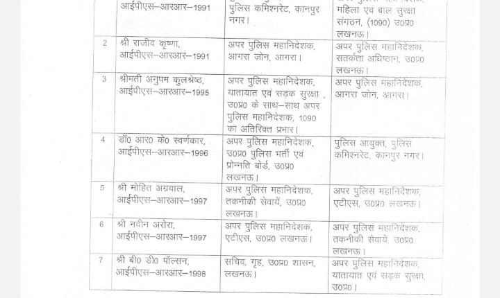 लखनऊ: UP मे 9 IPS अफसरों के ट्रांसफर कानपुर के पुलिस कमिश्नर बीपी जोगदण्ड हटाये गए 1090 के ADG बने बीपी जोगदण्ड ADG आगरा रहे राजीव कृष्णा को ADG सतर्कता अधिष्ठान भेजा गया ADG अनुपम कुलश्रेष्ठ को ADG आगरा भेजा गयाआर0 के0 स्वर्णकार को कानपुर का पुलिस कमिश्नर बनाया गया मोहित अग्रवाल को ADG ATS बनाया गया नवीन अरोड़ा को ADG टेक्निकल सर्विसेज बनाया गया बी0डी0 पाँल्सन को ADG ट्रैफिक बनाया गया डॉ संजीव गुप्ता को गृह सचिव उ0प्र0 शासन बनाया गयाएल0 आर0 कुमार को DIG लॉ एंड आर्डर यूपी बनाया गया |