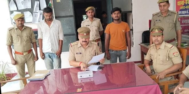 बस्ती बस्ती   को इण्डियन ढाबा एण्ड रेस्टोरेन्ट महूघाट में खाना खाने आये तीन युवको द्वारा ढाबा मालिक से मारपीट कर जानमाल की धमकी देते हुए करीब लाख रुपया की सोने की चिन छीन लिये, जिसके सम्बन्ध में थाना हरैया पर मु0अ0सं0-368/2022 धारा 147/323/504/506/356 भा0द0स0 पंजीकृत कर तत्काल साक्ष्य संकलन करते हुए आसपास के लोगों से पूछताछ एवं रेस्टोरेंट में लगे सीसीटीवी फुटेज की मदद से मंगलवार को मुरादीपुर तिराहे से दो अभियुक्तों (जय सिंह पुत्र हरेन्द्र सिंह निवासी ग्राम खम्हरिया सुजात थाना हर्रैया जनपद बस्ती,प्रखर विश्वकर्मा पुत्र रामजीत विश्वकर्मा निवासी राजघाट कस्बा हर्रैया थाना हर्रैया जनपद बस्ती) को गिरफ्तार कर लिया गया जिनसे पूछताछ में अभियुक्त गण की निशानदेही पर रेस्टोरेंट्स मालिक की सोने की चेन बरामद किया गया। बरामदगी के आधार पर मुकदमे में धारा 392, 411 आईपीसी की बढ़ोतरी की गई,