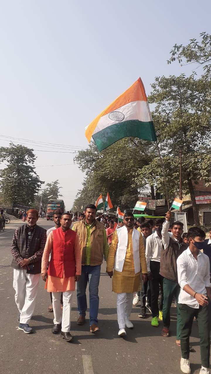 तिरंगा यात्रा में शामिल लोगों ने बताया कि आजादी के अमृत महोत्सव के तहत राष्ट्रीय एकता व अखण्डता तथा राष्ट्र की रक्षा के लिए अपने प्राण न्यौछावर करने वाले अमर सपूतों के सम्मान में तिरंगा यात्रा निकाली जा रही है।तिरंगा यात्रा में राहुल कौशल,संघ के जिला प्रचारक,राघवेंद्र प्रताप सिंह,विजय किशोर तिवारी,प्रदीप सिंह थौरी,हरिशंकर दुबे,प्रेम चन्द्र तिवारी,मंडल अध्यक्ष भाजपा महेंद्र मिश्र,प्रभात शुक्ला,अतुल सिंह,कालीबक्स सिंह,जीत बहादुर सिंह,शैलेन्द्र सिंह,अभय दुबे,अभिषेक तिवारी,बलराम कुमार अग्रहरि,जय विंद सिंह,रघुवंश मिश्र सहित बड़ी संख्या में लोग शामिल रहे।