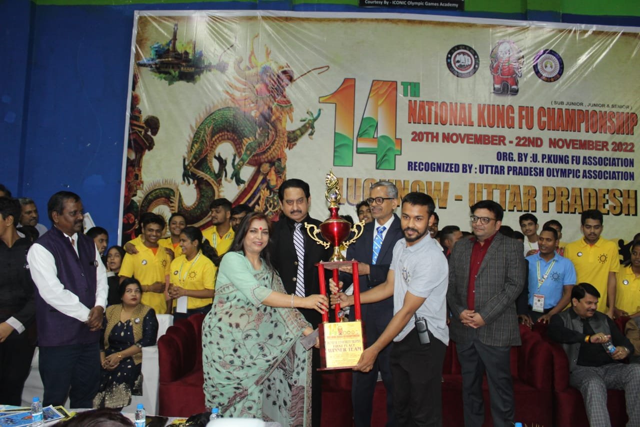 तीन दिवसीय इस ‘‘राष्ट्रीय कुंगफू‘‘ प्रतियोगिता में 16 राज्यों के लगभग 400 खिलाड़ियों ने हिस्सा लिया। समापन समारोह में बतौर मुख्य अतिथि मौजूद यूपीएसआरटीसी के अध्यक्ष व पूर्व मुख्य सचिव राजेंद्र कुमार तिवारी ने कहा कि किसी भी खेल में एक टीम विजेता बनती है, लेकिन उसमें सभी की सहभागिता होती है। उन्होंने कहा कि कुंगफू ऐसा मार्शल आर्ट है जिसमें जन जन का कल्याण होता है। इससे हम शरीर के साथ ही मन को भी स्वस्थ बनाते हैं। उन्होंने प्रतियोगिता की विजेता यूपी टीम को विशेष बधाई के साथ ही सभी टीमों व सफल आयोजन के लिए यूपी कुंगफू संघ को बधाई दी। उन्होंने आत्म रक्षा के लिए कुंगफू और मार्शल आर्ट की शिक्षा स्कूल स्तर पर किये जाने की वकालत की।