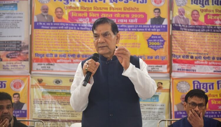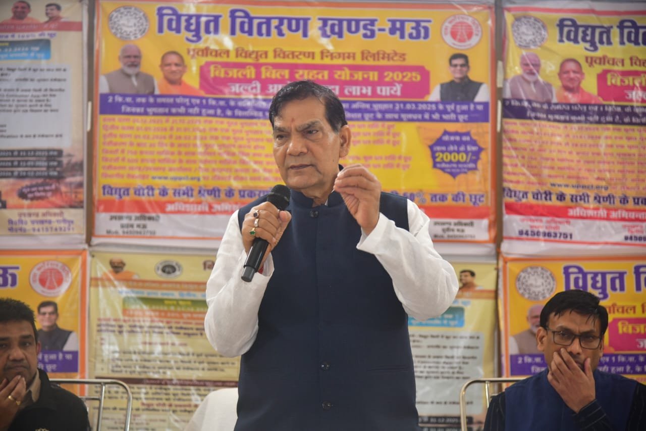 लखनऊ: 21 नवंबर, 2025:उत्तर प्रदेश सरकार के नगर विकास एवं ऊर्जा मंत्री श्री ए.के. शर्मा ने मऊ प्रवास के दौरान बहुद्देशीय भवन मंगलम में आयोजित विद्युत शिविर में विद्युत राहत योजना के बारे में विस्तार से बताते हुए संबंधित अधिकारियों को निर्देशित किया कि गांव गांव में शिविर लगाकर उपभोक्ताओं को इस योजना की जानकारी देते हुए उन्हें इसका लाभ प्रदान करें।