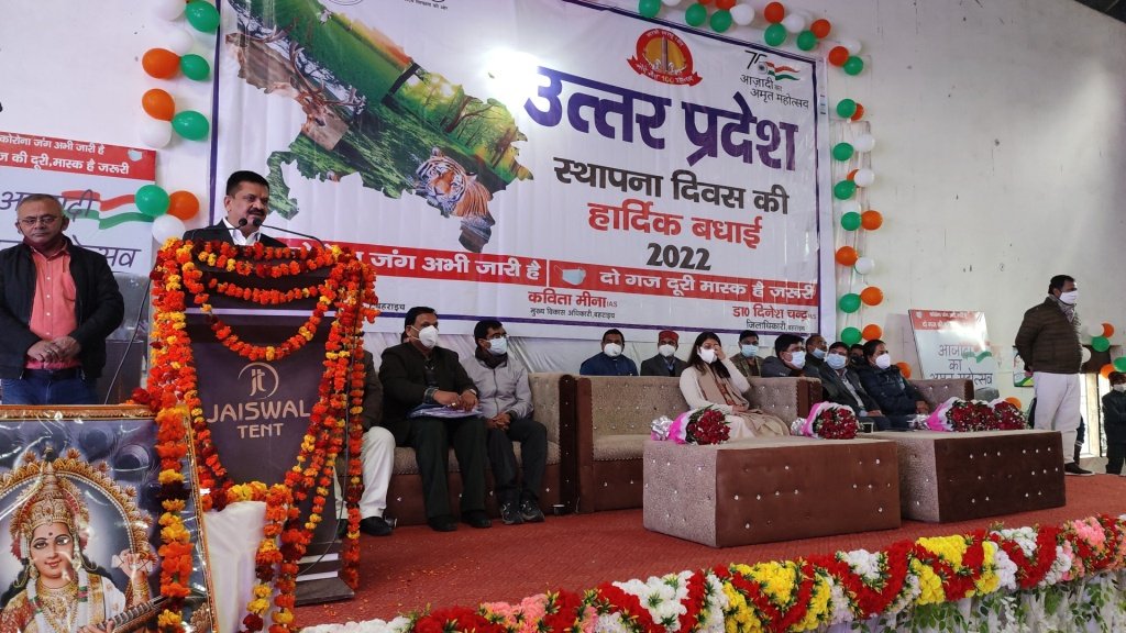 इस अवसर पर स्कूली छात्र-छात्राओं द्वारा सरस्वती वंदना, स्वागतगीत, वन्देमातरम, देशभक्ति गीत तथा समूह गान एवं नृत्य प्रस्तुत किया गया। समारोह को सम्बोधित करते हुए जिलाधिकारी डॉ. दिनेश चन्द्र ने कहा कि 1950 में स्थापित होने वाला उत्तर प्रदेश देश का हृदय स्थल है। उत्तर प्रदेश अपने अन्दर सांस्कृतिक विरासत को समेटे हुए है। भौगोलिक दृष्टि से भी प्रदेश अत्यन्त सुन्दर और मनोहारी है।