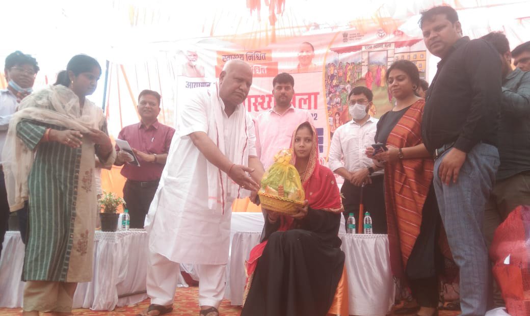 अयोध्या : आजादी का अमृत महोत्सव के एक भाग के रूप में गुरूवार को ब्लॉक मया बाज़ार और सोहावल में ब्लॉक हेल्थ मेला संपन्न हुआ। ब्लॉक हेल्थ मेला में विभिन्न विभागों की योजनाओं व सेवाओं का लाभ सभी आमजन को हासिल हो सके इसके लिए सभी विभागों के स्टॉल लगाए गए। ब्लॉक मया बाज़ार में ब्लॉक हेल्थ मेला का उदघाटन मुख्य अतिथि सांसद लल्लू सिंह जी द्वारा किया गया। मुख्य अतिथि द्वारा मेले में सभी विभागों के स्टॉल का निरीक्षण किया गया तथा उन्होंने मेले में फिट इंडिया मूवमेंट के तहत प्रतिभागियों को स्पोट्र्स किट का वितरण, संचारी रोग नियंत्रण के लिए फाइलेरिया किट का वितरण किया।मुख्य अतिथि ने बाल विकास एवम पुष्टाहार विभाग द्वारा आयोजित गोद भराई रस्म और अन्न प्रासन में गर्भवती महिलाओं को पुष्टाहार दिया और बच्चो को खीर खिलाई।