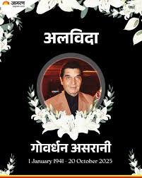 हिंदी सिनेमा के दिग्गज एक्टर और अपनी कॉमेडी से सबको हंसाने वाले श्री गोवर्धन असरानी का निधन हो गया है। लंबी बीमारी के बाद आज शाम लगभग 4 बजे वह इस दुनिया को छोड़कर चले गए। असरानी ने हिंदी सिनेमा में अपना बड़ा योगदान दिया था। उनके कई किरदार हैं जो दर्शकों के दिल में बसे हुए हैं।