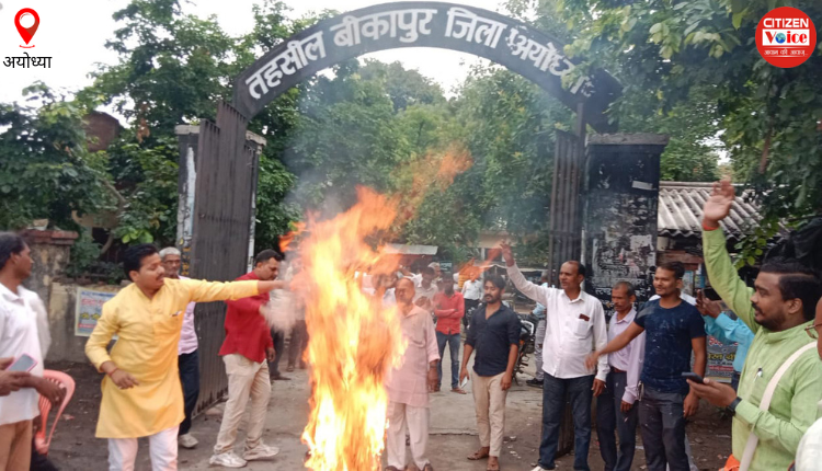 अयोध्या : राजस्थान उदयपुर में हुए जघन्य हत्याकांड के विरोध में विश्व हिंदू परिषद व बजरंग दल के कार्यकर्ताओं ने बजरंग दल के संयोजक लालजी शर्मा के नेतृत्व में दर्जनों कार्यकर्ताओं ने बीकापुर तहसील मुख्यालय पर पुलिस की उपस्थिति में आतंकवाद का पुतला फूंक कर जताया विरोध और कार्यकर्ताओं ने पाकिस्तान के मुर्दाबाद नारा लगाए। बजरंग दल के जिला संयोजक लाल जी शर्मा ने कहां की जिस क्रूरता के साथ मुस्लिम युवकों ने कन्हैया लाल की नृशंस  हत्या की है।