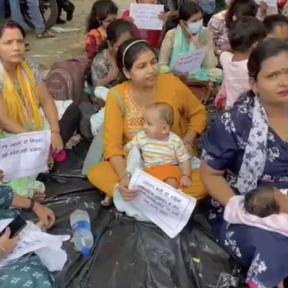 जब तक नहीं होगी सुनवाई तब तक अपने बच्चों को लेकर देती रहेंगी धरना