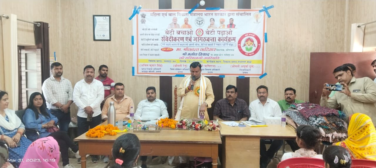 उक्त बातें क्षेत्रीय विधायक श्रीकान्त कटियार ने फतेहपुर चौरासी ब्लॉक मुख्यालय के सभागार में शुक्रवार को ग्राम विकास एवं राष्ट्रीय आजीविका मिशन द्वारा स्वास्थ्य विभाग तथा बाल विकास एवं पुष्टाहार परियोजना विभाग के साथ आयोजित किए गए साझा कार्यक्रम  *बेटी बचाओ  बेटी पढ़ाओ* तथा  *संवेदीकरण एवं जागरूकता कार्यक्रम*  को संबोधित करते हुए कही।उन्होंने कहा की केन्द्र एवं प्रदेश की भाजपा सरकार के शासन काल में आज की नारी अपने को अबला न समझे।भारतीय जनता पार्टी की सरकार में महिलाएं पूरी तरह सुरक्षित ही नही बल्कि आत्मनिर्भर है।