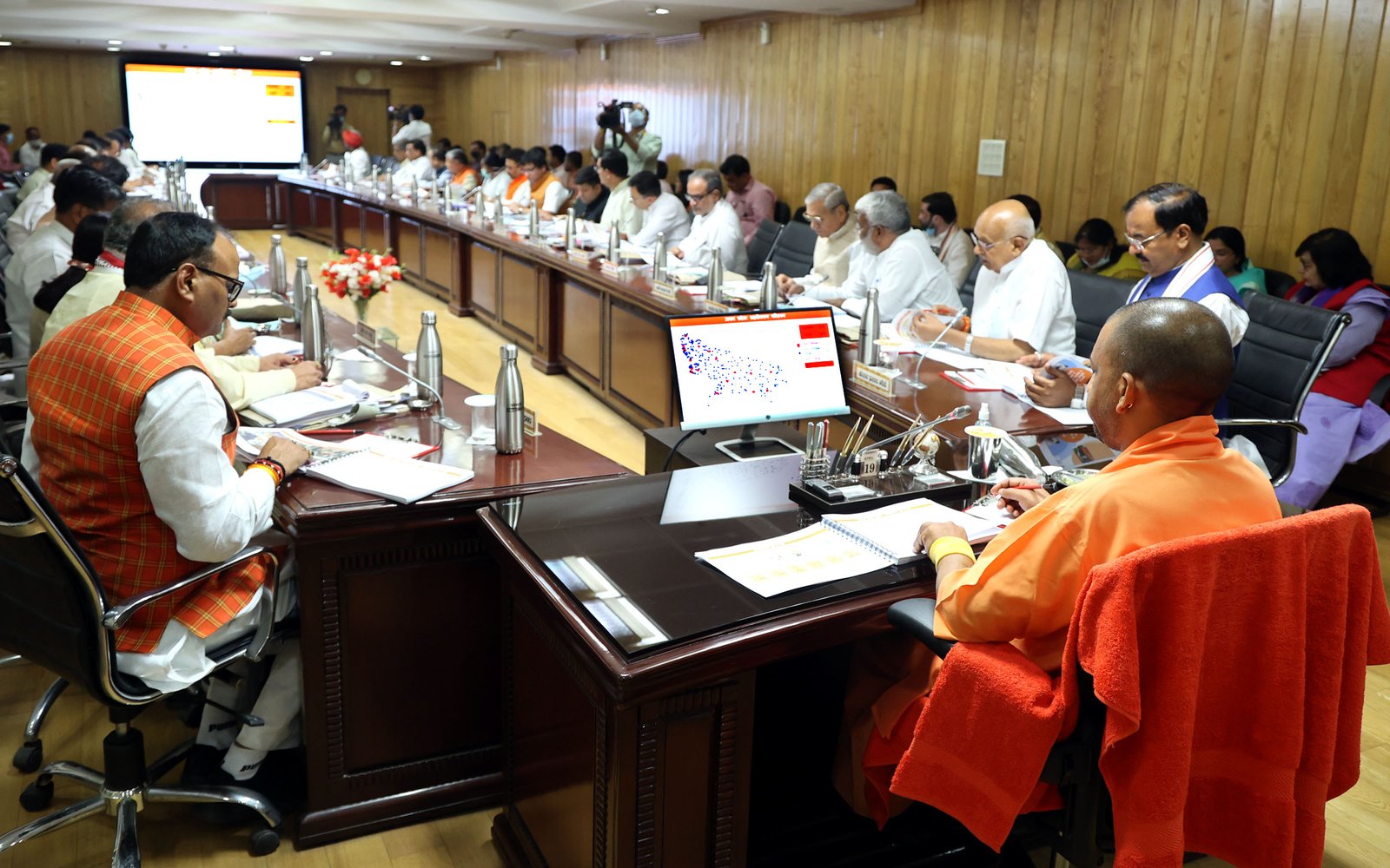 मुख्यमंत्री के समक्ष अपर मुख्य सचिव नगर विकास रजनीश दुबे द्वारा नगर विकास एवं नगरीय रोजगार व गरीबी उन्मूलन विभाग से सम्बन्धित प्रस्तुतीकरण किया गया। प्रमुख सचिव आवास दीपक कुमार द्वारा आवास एवं शहरी नियोजन के सम्बन्ध में प्रस्तुतीकरण किया गया। पर्यावरण, वन एवं वन्य जीव विभाग से सम्बन्धित प्रस्तुतीकरण अपर मुख्य सचिव वन मनोज सिंह द्वारा किया गया।